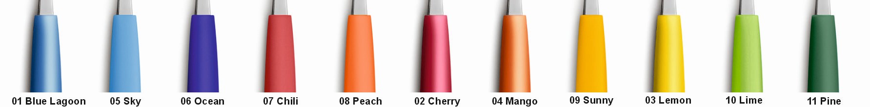 Dank des cleveren Farbkonzepts in 11 leuchtenden Farben lässt sich jedes Besteck ganz einfach einer Gruppe zuordnen: Die Sonnengruppe isst mit Gelb, die Bärengruppe mit Blau –