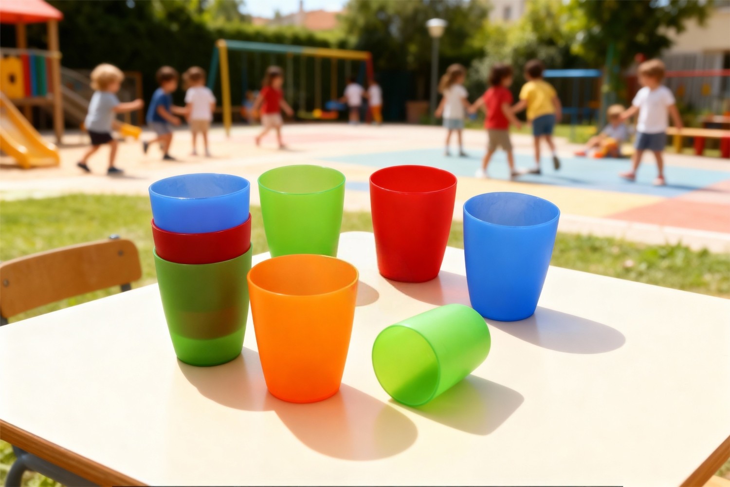 Der Becher ist spülmaschinenfest, stapelbar und damit besonders praktisch für den täglichen Einsatz in Gruppen. Ob im Gruppenraum, im Garten oder bei Ausflügen und Festen – er ist vielseitig einsetzbar. Erhältlich in vier verschiedenen Farben, sorgt er für Übersicht und Freude im Kindergartenalltag.