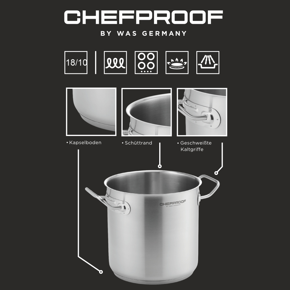 Passender Deckel für die CHEFPROOF Topfserie aus hochwertigem Chromnickelstahl 18/10.