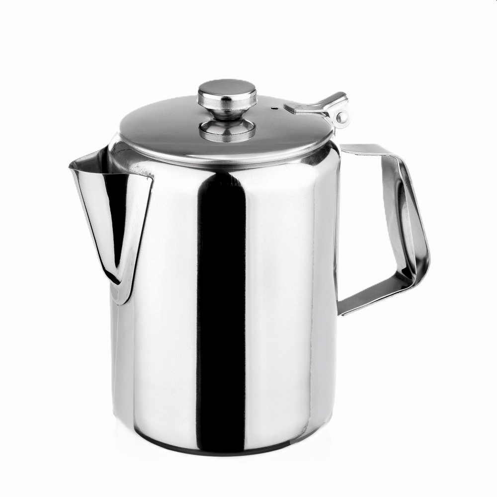 Die Kaffeekanne ist in drei Größen erhältlich (1,0 l, 1,5 l und 2,0 l) und passt sich flexibel dem Bedarf im Teamraum an. Gefertigt aus hochglanzpoliertem Chromnickelstahl überzeugt sie durch Langlebigkeit, Hygiene und ein zeitloses Design. Der ergonomische Griff ermöglicht ein einfaches Einschenken, während der dicht schließende Deckel den Kaffee lange warm hält.