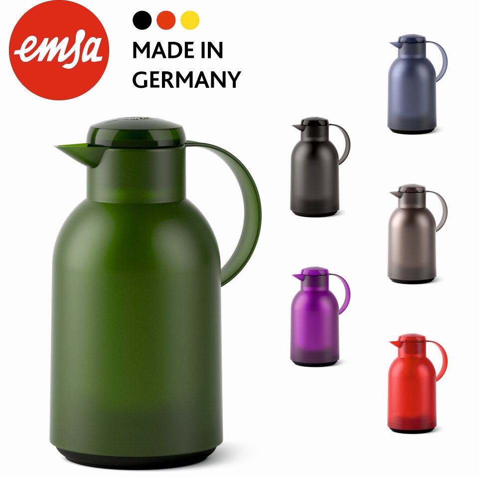 Isolierkanne 1,5 Liter, Glaseinsatz, Polypropylen, öffnen per Knopfdruck dunkelgrün