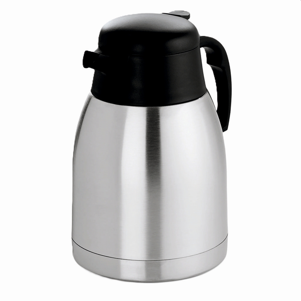 Erhältlich mit 1, 1,5 oder 2 Litern Inhalt, passt sie sich flexibel dem Bedarf an. Der Korpus aus rostfreiem Edelstahl (Chromnickelstahl Cr Ni 18/8–18/10) steht für Langlebigkeit, Hygiene und gute Isoliereigenschaften. Oberteil und Griff aus Kunststoff ermöglichen eine sichere und angenehme Handhabung.