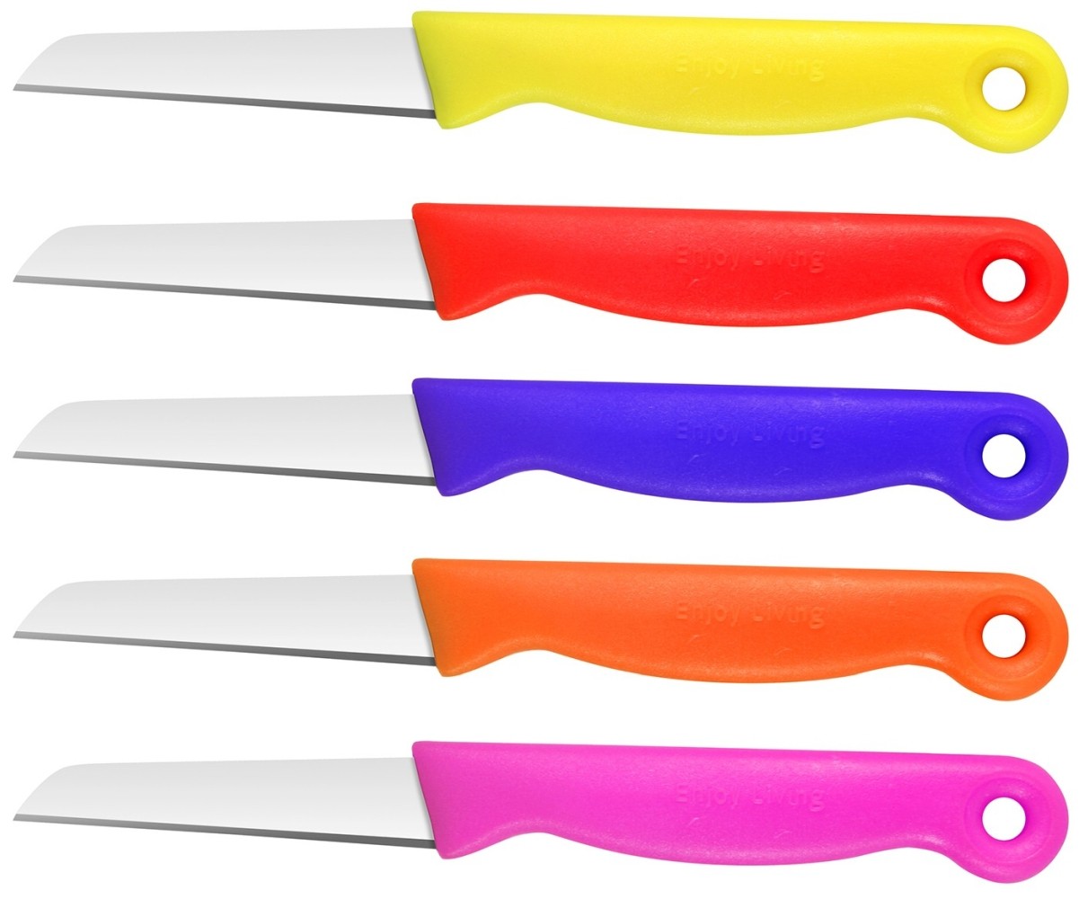 Durch die leuchtenden Farben sind die Messer im Küchenalltag schnell wiederzufinden – in der Schublade wie auch nach dem Spülen. Praktisch, handlich, vielseitig – und immer ein fröhlicher Hingucker.