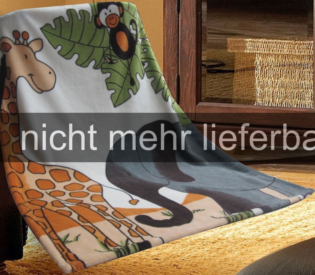 Kuscheldecke 75 x 100 cm, Motiv "Giraffe, Elefant und Zebra", trocknergeeignet