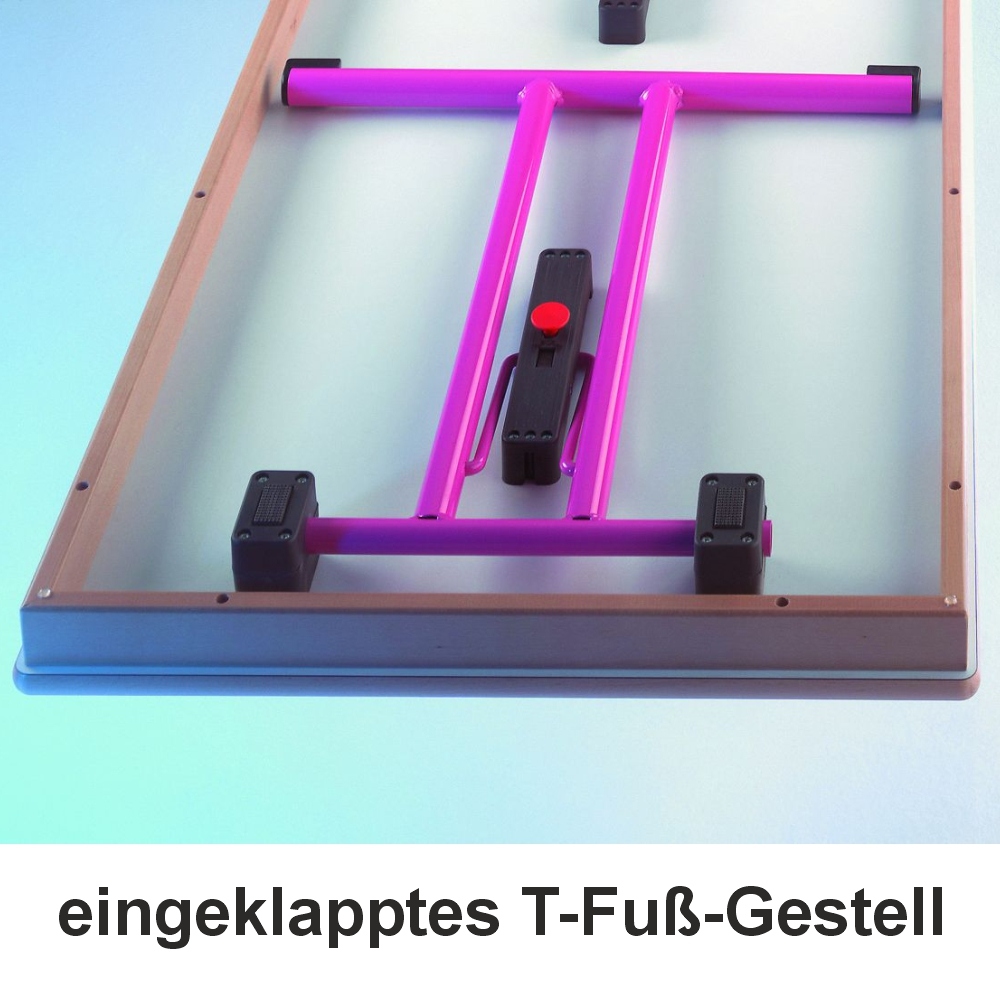 • Tischgestell: zwei Ausführungen, einklappbar, pulverbeschichtet, RAL-Farbe nach Wahl