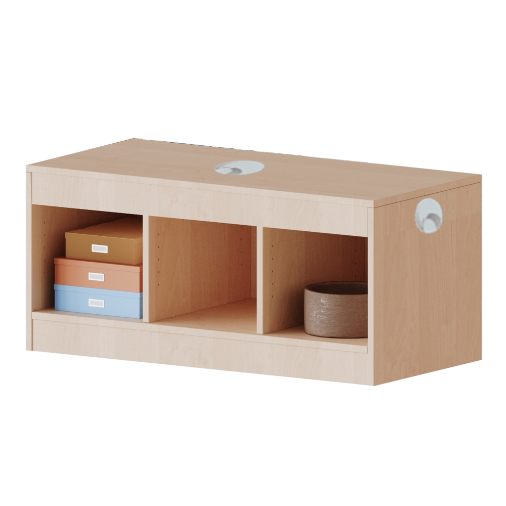 Das Regal ist die ideale Ausstattung von Arbeitsplatzkombinationen! Frei stehend oder in einer flachen Regalstrecke eingebunden stellt das Regal durch sein inclusives standardmäßiges Kabelfach und den insgesamt 3 Kabeldurchlässen mittig im Oberboden und in den oberen Bereich der Seiten zur Stromversorgung vielfache Nutzungs- und Aufstellmöglichkeiten zur Verfügung. Das ca. 8 cm hohe Kabelfach unter dem Oberboden bietet auch Möglichkeiten zur verdeckten Kleingerätebefestigung. Die Höhe des unteren Faches mit Boxen entspricht eine Ordnerhöhe. Für die übersichtliche Aufbewahrung von Dingen aus dem Lehreralltag konfigurieren Sie Ihr Wunsch Regal, indem Sie bei den angebotenen Varianten Ihre Auswahl aus den Möglichkeiten der 1-, 2- 3- oder 4reihigen Ausführung oder den Festbreiten 80 und 100 cm treffen. Die hier vorgestellten Regale finden Sie auch mit Ergo-Tray Boxen in den dazu passenden Breiten.