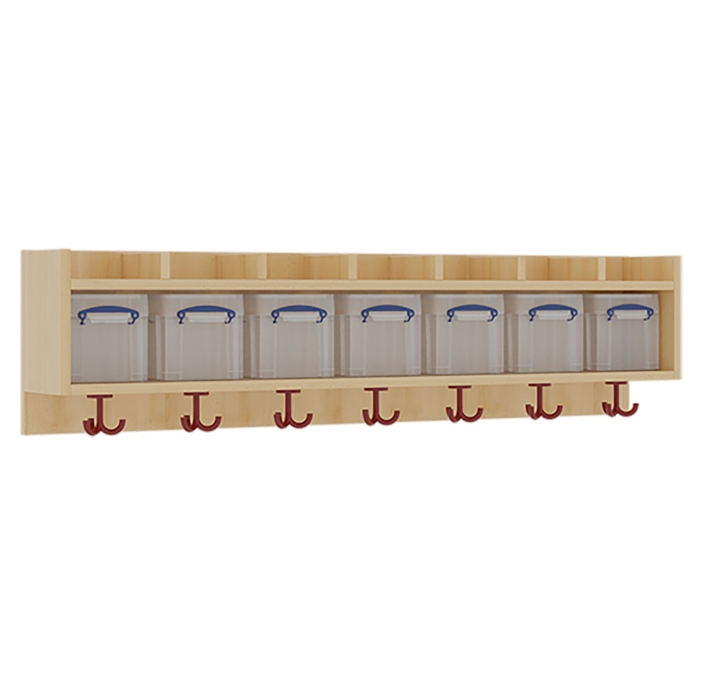 Mützenablage 1,5-reihig mit Kunststoffboxen, 7 Plätze, B/H/T 140 x 34,5 x 27 cm