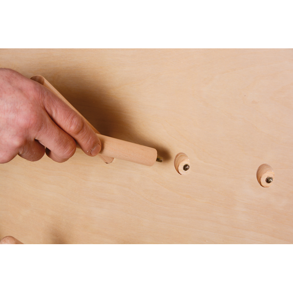 Material: lackiertes Sperrholz, Vollholz-Stäbe, Metall, Kunststoff-Rollen