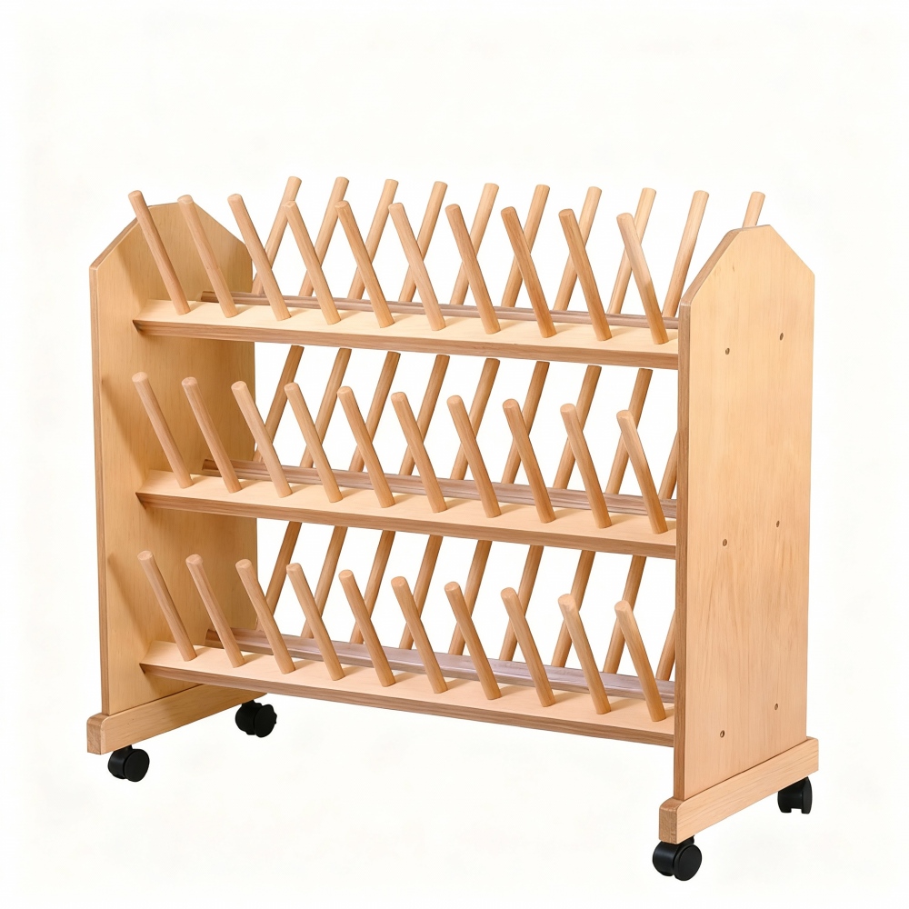 Der robuste Stiefelwagen aus hochwertigem Buche-Multiplex sorgt für Ordnung im Garderobenbereich und bietet nassen Schuhen und Stiefeln einen gut belüfteten Platz zum Trocknen. Dank leichtgängiger Rollen ist er flexibel einsetzbar und schnell dort, wo er gebraucht wird.