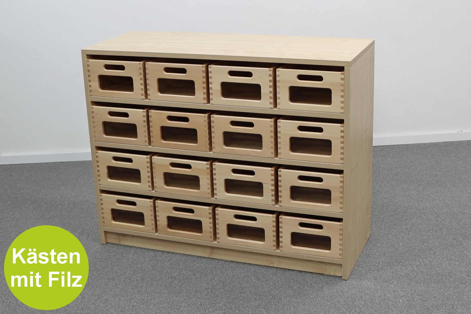 Korpusschrank Ahorn Honig mit 16 mittleren Materialkästen, B/H/T 102 x 80 x 40 cm, mit Sichtfenster, mit Filz