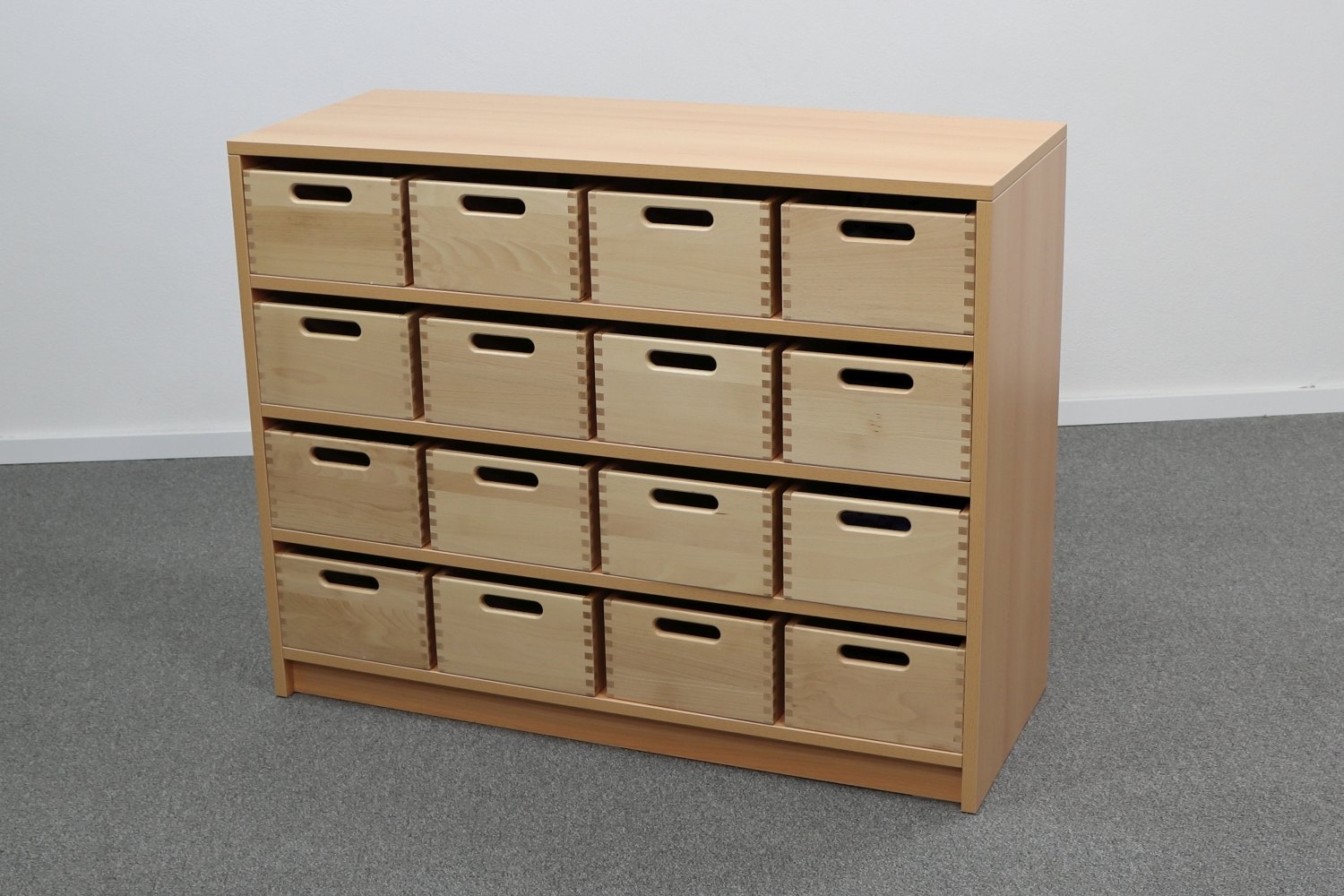 Korpusschrank Buche mit mittleren Materialkästen, B/H/T 102 x 80 x 40 cm, ohne Sichtfenster, ohne Filz
