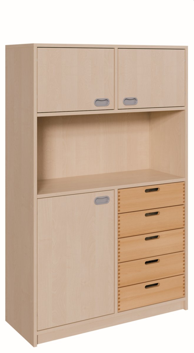 Korpusschrank mit 5 Massivholzschüben und Mittelwand und Tür links, B/H/T 102 x 160 x 40 cm