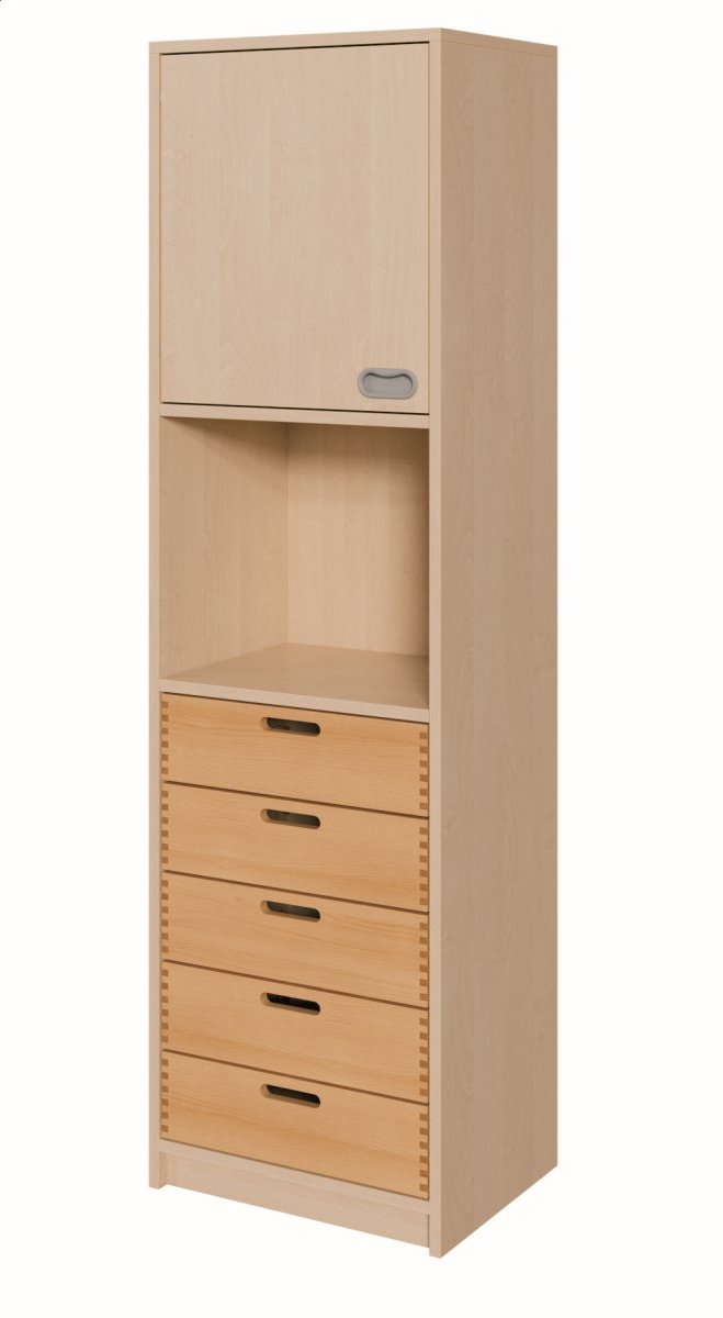 Korpusschrank mit 5 Massivholzschüben und Tür links, B/H/T 52 x 180 x 40 cm