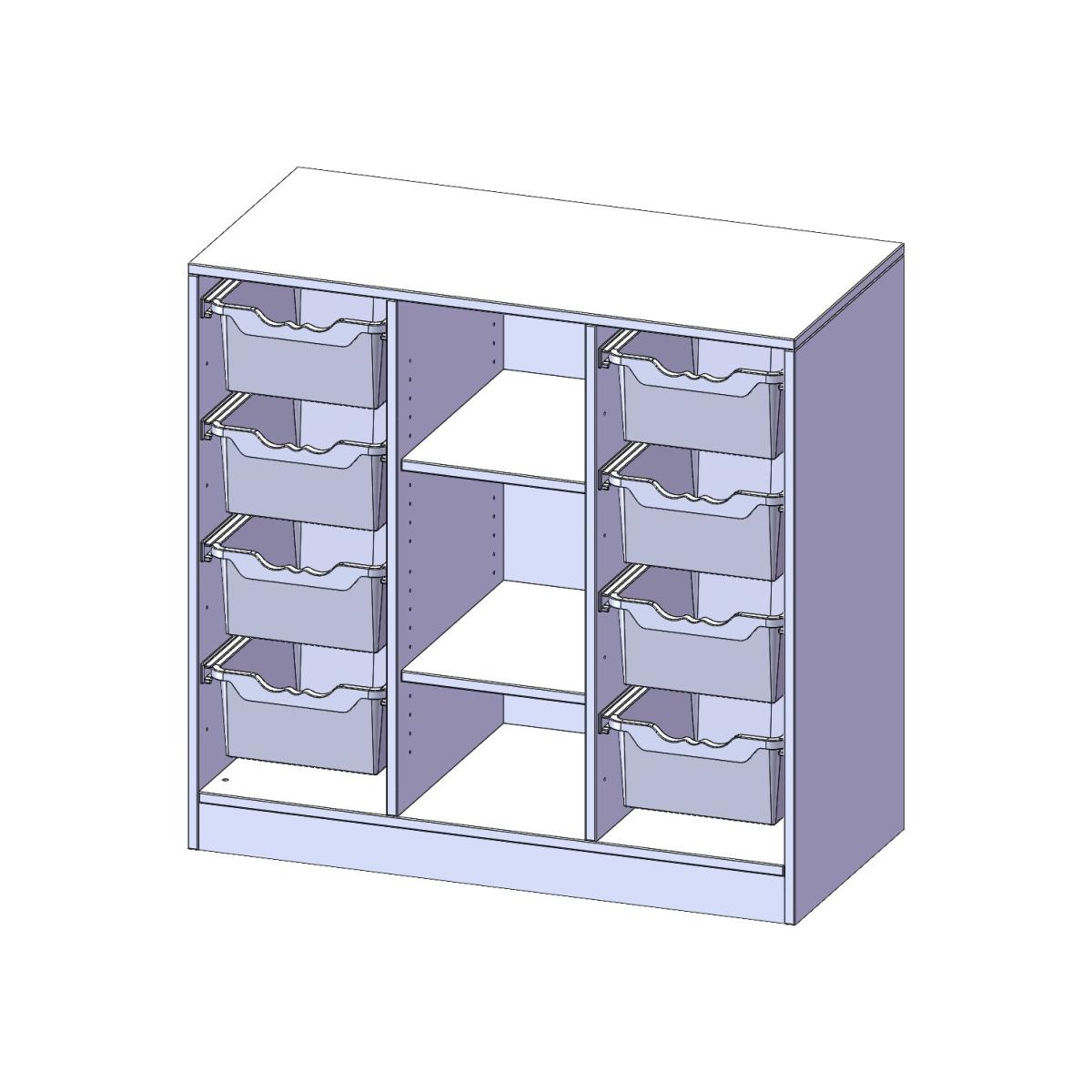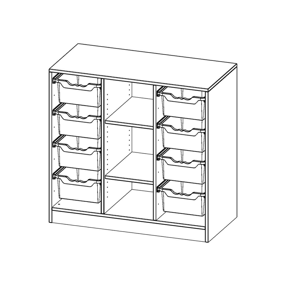 mit Sockel, rechts und links je 4 hohe ErgoTray Boxen, 3 Fächer in der Mitte, B/H/T: 104,5x100x50 cm
