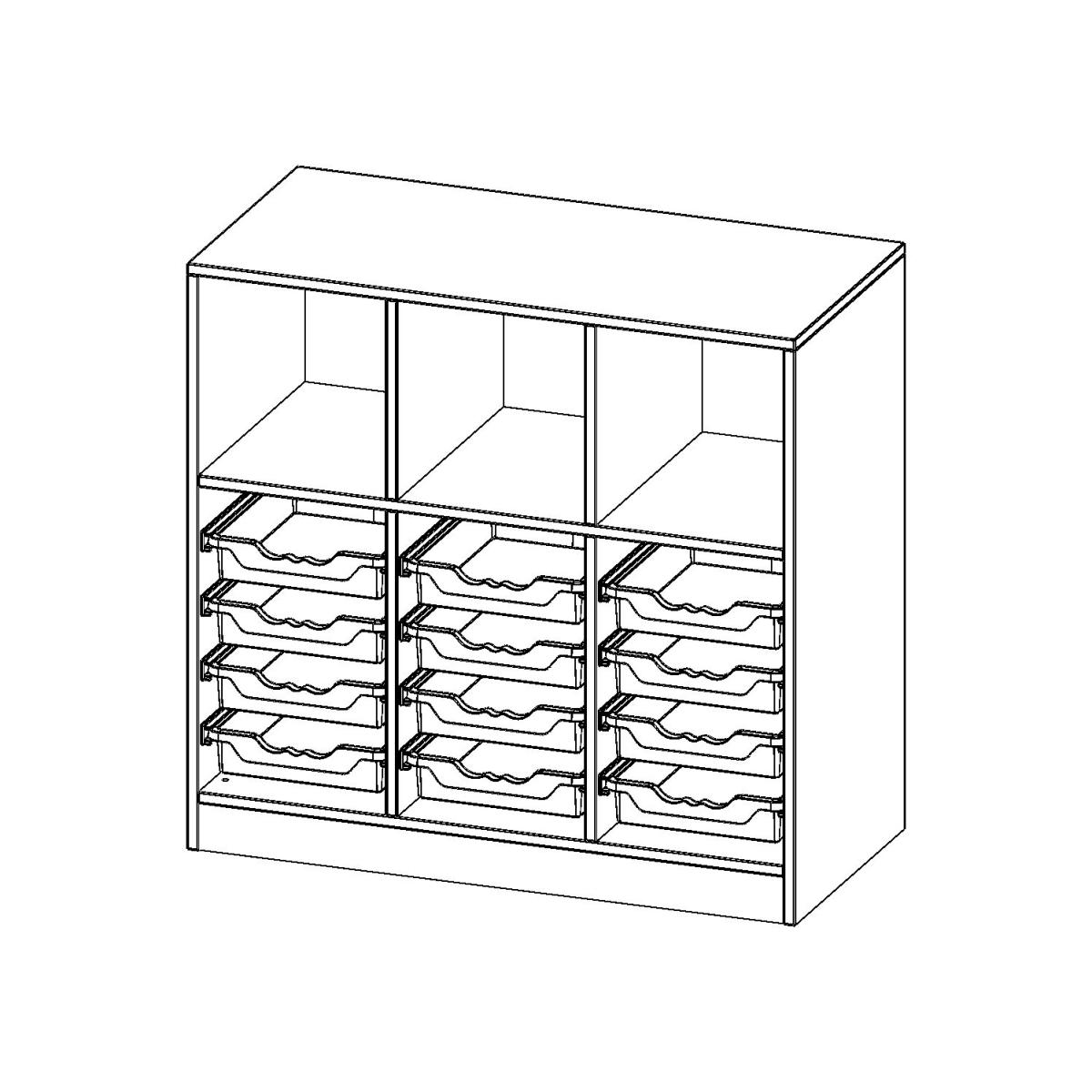 mit Sockel, oben 3 Fächer, unten 12 flache ErgoTray Boxen, B/H/T: 104,5x100x50 cm
