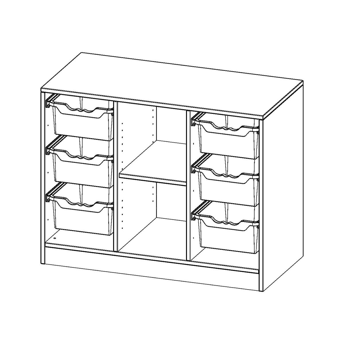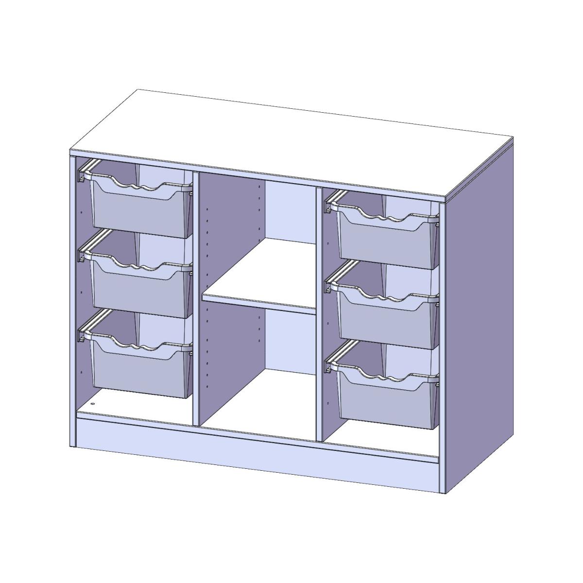 mit Sockel, rechts und links je 3 hohe ErgoTray Boxen, 2 Fächer in der Mitte, B/H/T: 104,5x82x50 cm