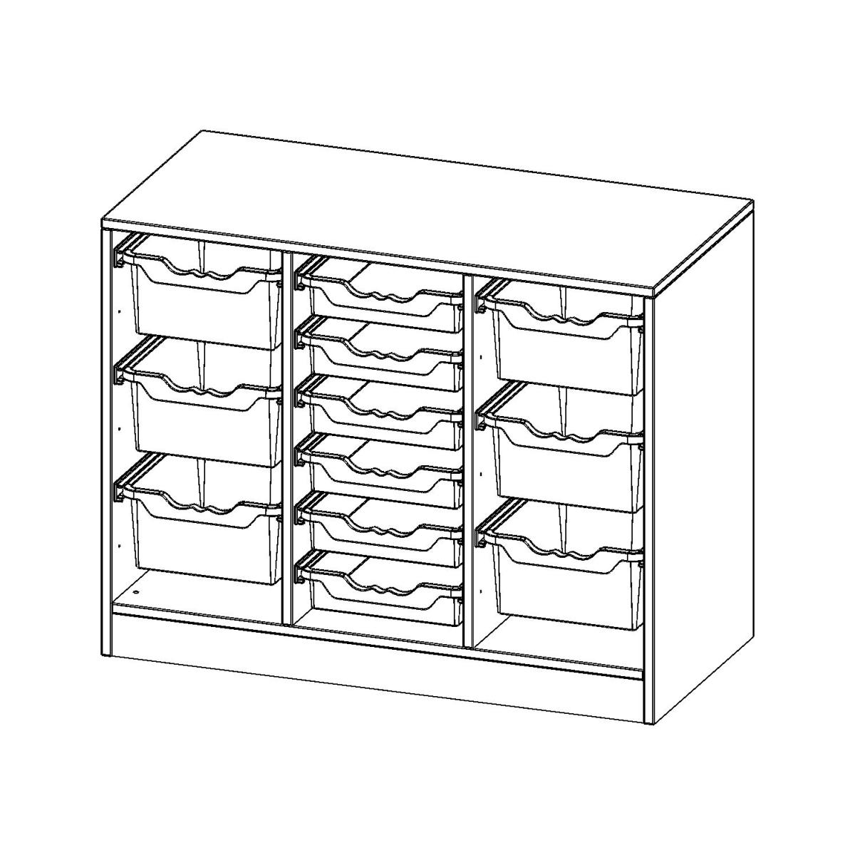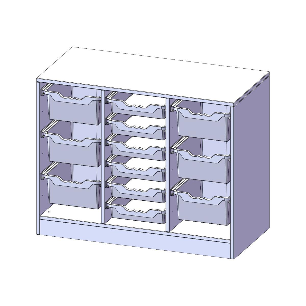 mit Sockel, rechts und links je 3 hohe, in der Mitte 6 flache ErgoTray Boxen, B/H/T: 104,5x82x50 cm
