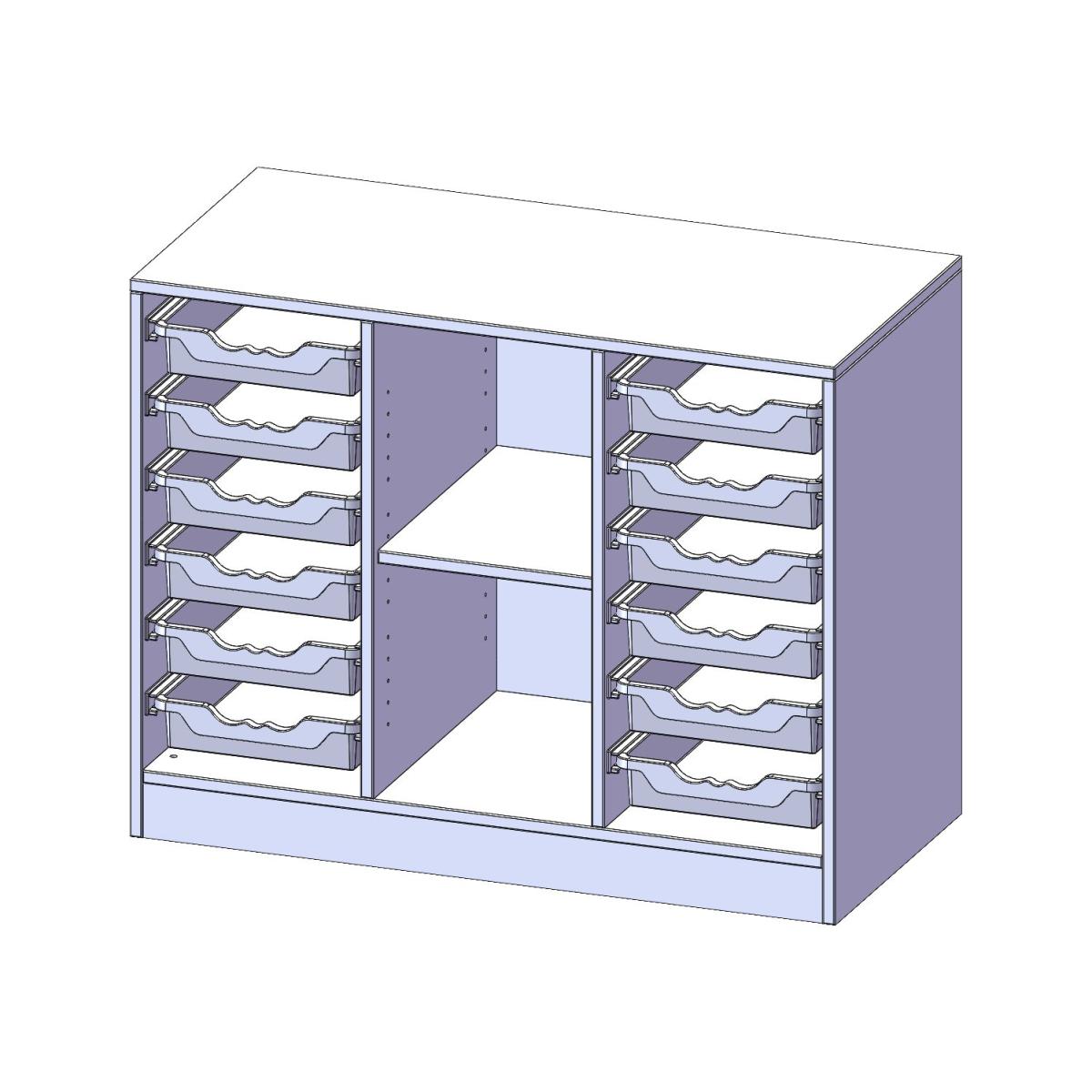 mit Sockel, rechts und links je 6 flache ErgoTray Boxen, 2 Fächer in der Mitte, B/H/T: 104,5x82x50 cm