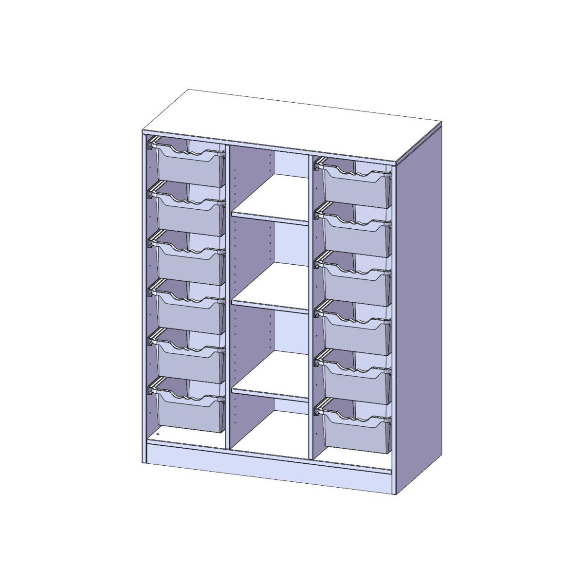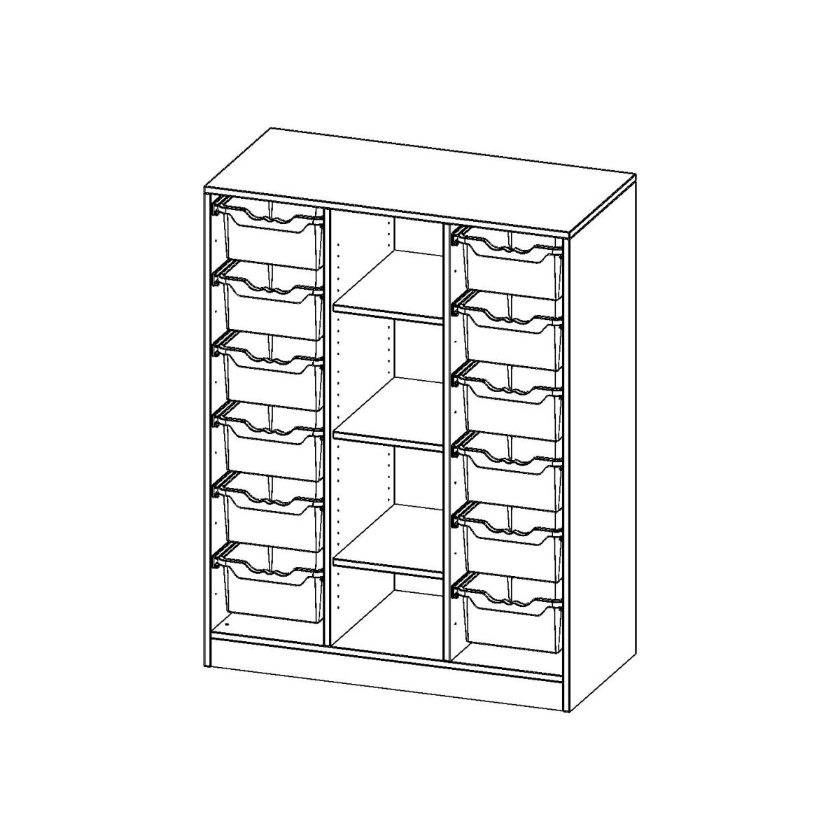 mit Sockel, rechts und links je 6 hohe ErgoTray Boxen, 4 Fächer in der Mitte, B/H/T: 104,5x136x50 cm