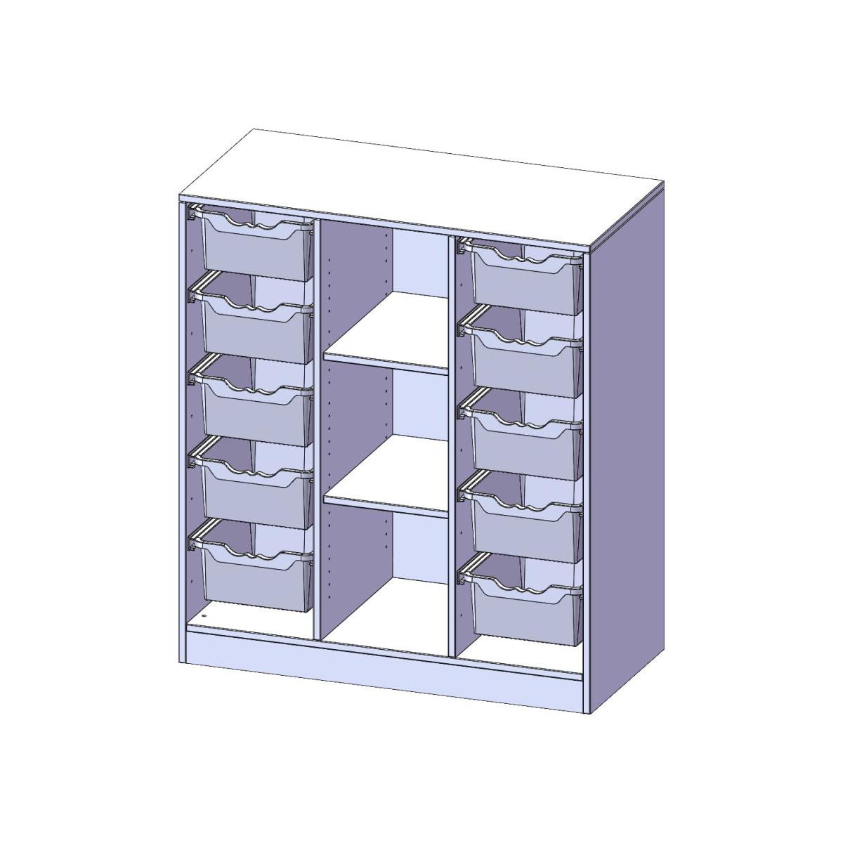 mit Sockel, rechts und links je 5 hohe ErgoTray Boxen, 3 Fächer in der Mitte, B/H/T: 104,5x118x50 cm