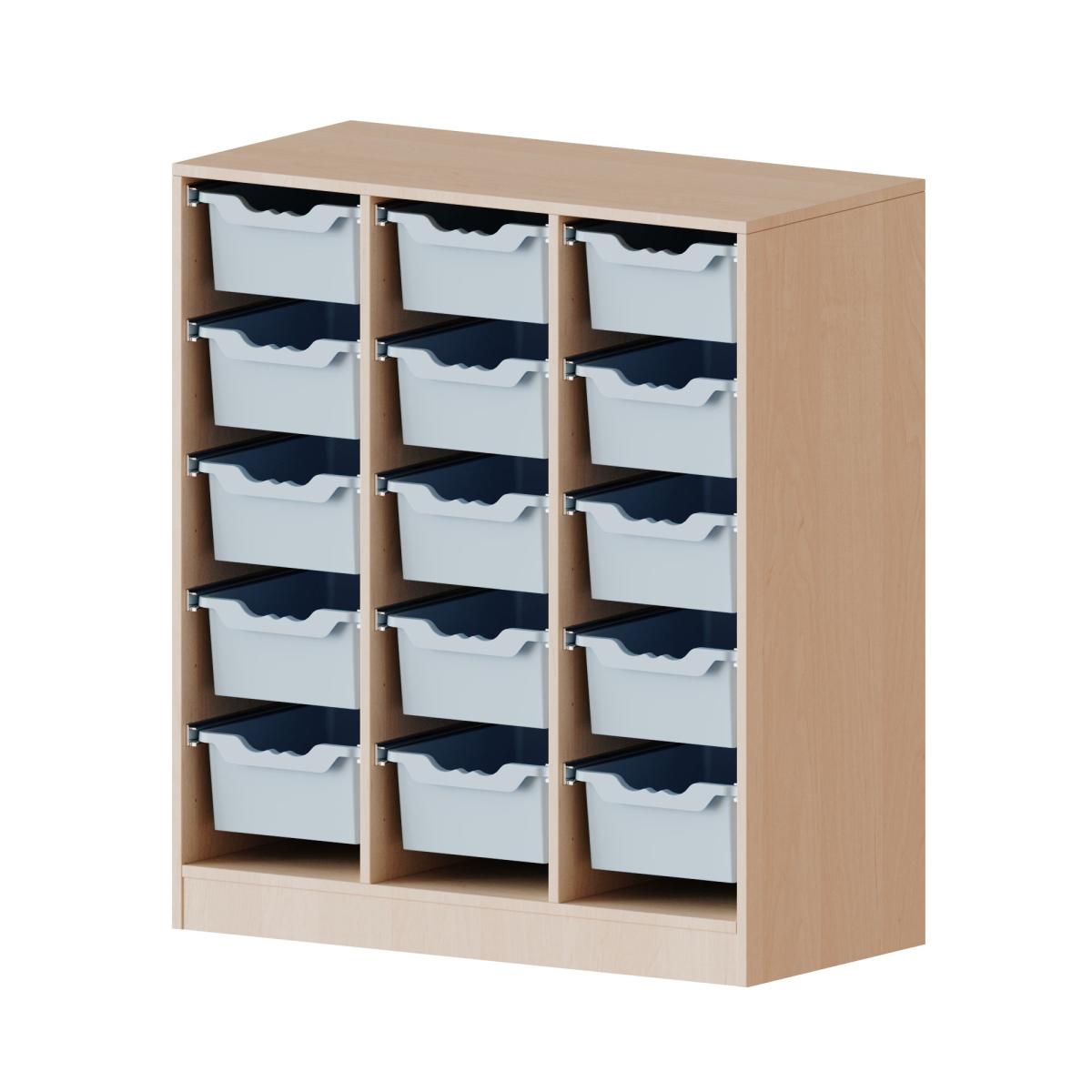 Breite 104,5 cm, Gesamthöhe 118 cm, mit Sockel, 15 hohe ErgoTray Boxen