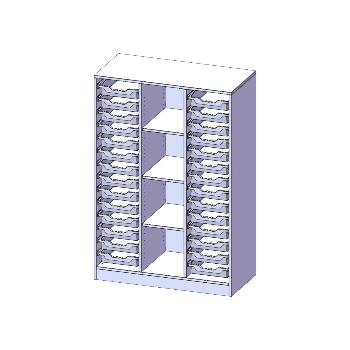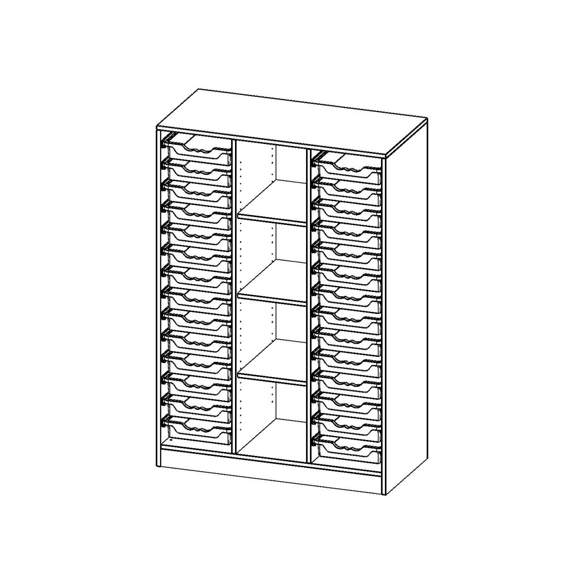 mit Sockel, rechts und links je 14 flache ErgoTray Boxen, 4 Fächer in der Mitte, B/H/T: 104,5x154x50 cm