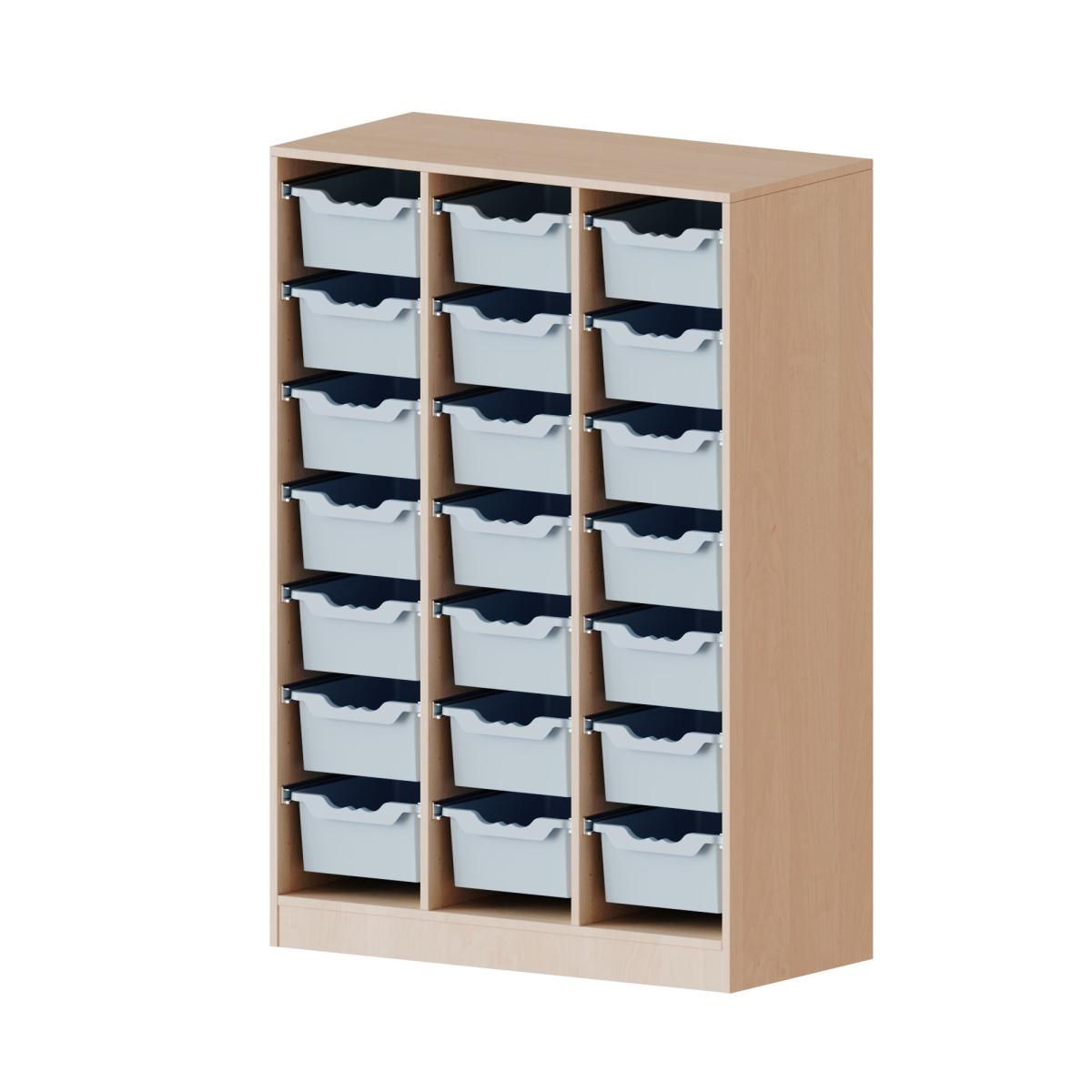 Breite 104,5 cm, Gesamthöhe 154 cm, mit Sockel, 21 hohe ErgoTray Boxen