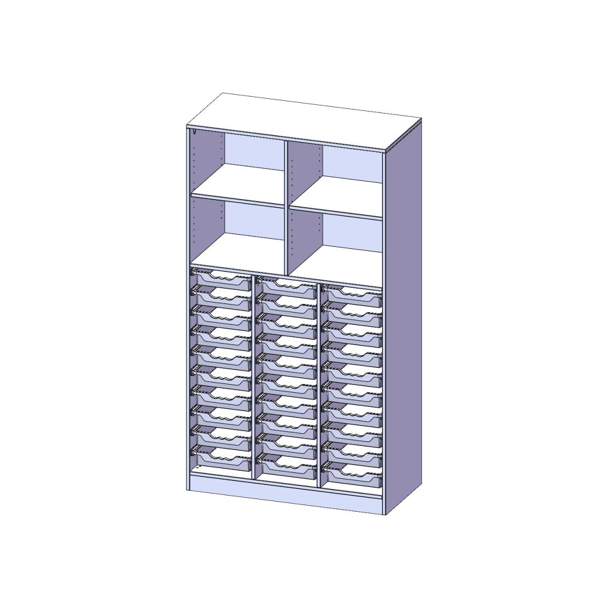 mit Sockel, unten 30 flache ErgoTray Boxen, oben 2 Einlegeböden, B/H/T: 104,5x190x50 cm
