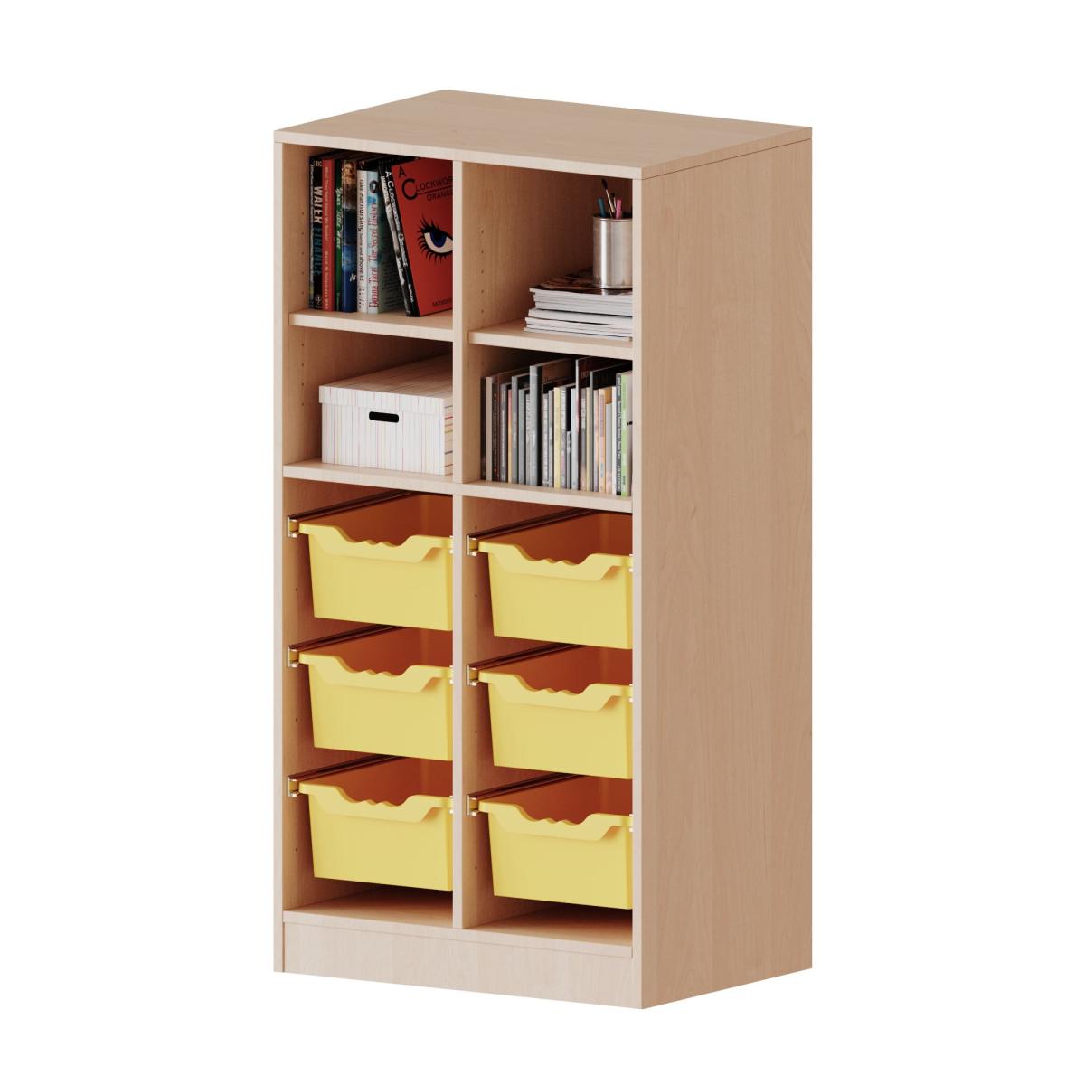 Breite 70,3 cm, Gesamthöhe 136 cm, mit Sockel, oben 4 Fächer, unten 6 hohe ErgoTray Boxen