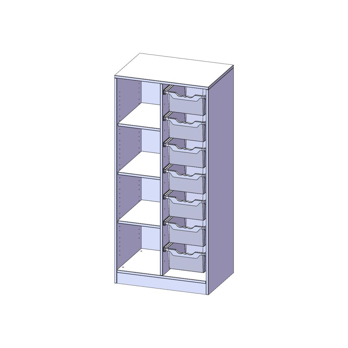 mit Sockel, links 4 Fächer, rechts 7 hohe ErgoTray Boxen, B/H/T: 70,3x154x50 cm