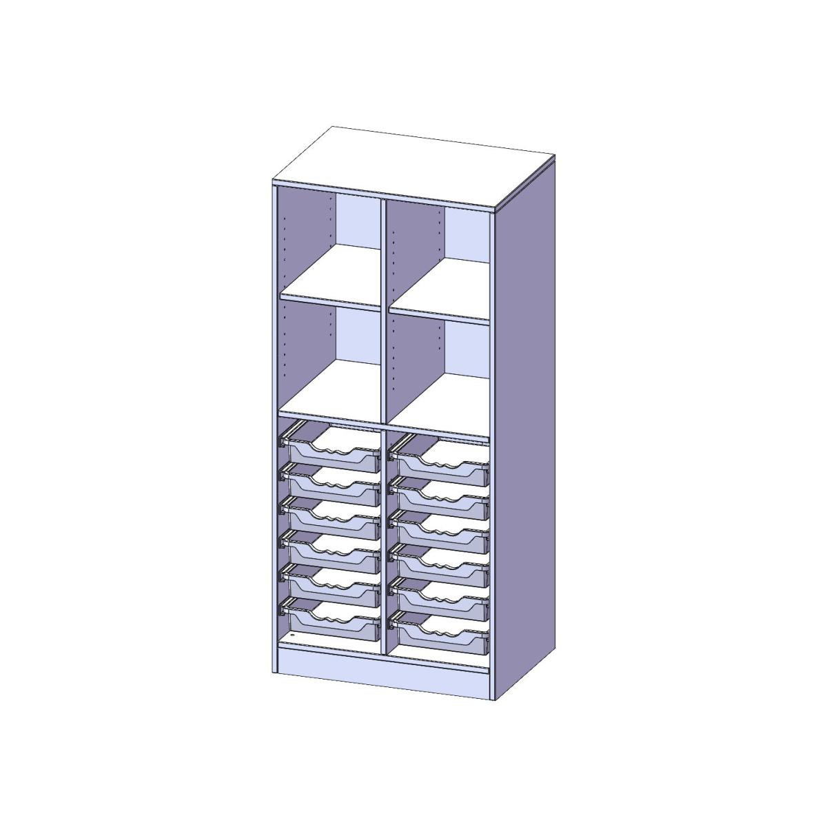 mit Sockel, oben 4 Fächer, unten 12 flache ErgoTray Boxen, B/H/T: 70,3x154x50 cm