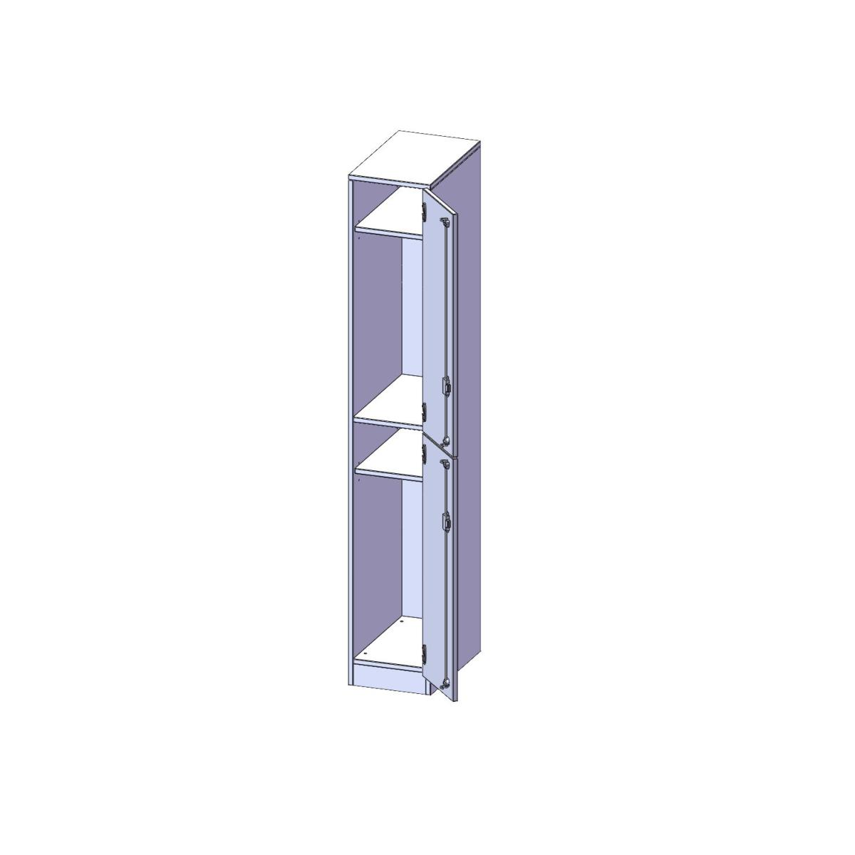Im Inneren befinden sich eine Ablage für Mützen oder Hüte, Dreifachhaken. Ideal als Garderobeneinheiten für mehrere Schüler in Kombination mit anderen Spinden. DIe Türen sind abschließbar und öffnen 270°. Je 2 ABteile übereinander.