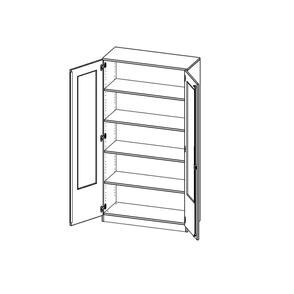 Die Türen öffnen 270°, sind abschließbar und mit einem Glasausschnitt versehen. Die Glaseinlage besteht aus Sicherheitsgründen aus Acrylglas, ist von innen eingesetzt und auf der Tür von innen verschraubt. So sehen Sie schnell, was im Schrank untergebracht ist. Besonders praktisch für Sammlungen.