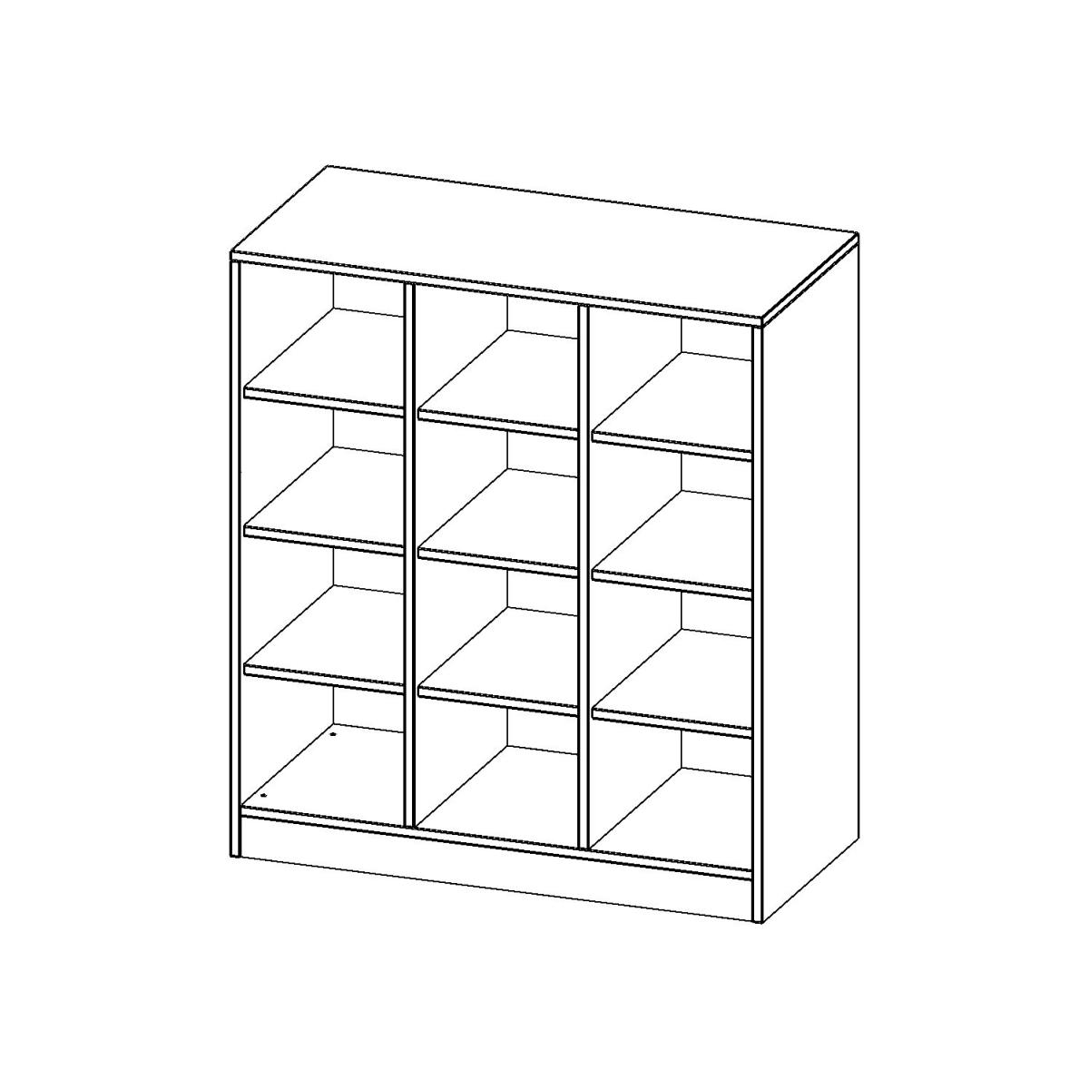 12 halbhohe Fächer, B/H/T: 104,5x118x50 cm