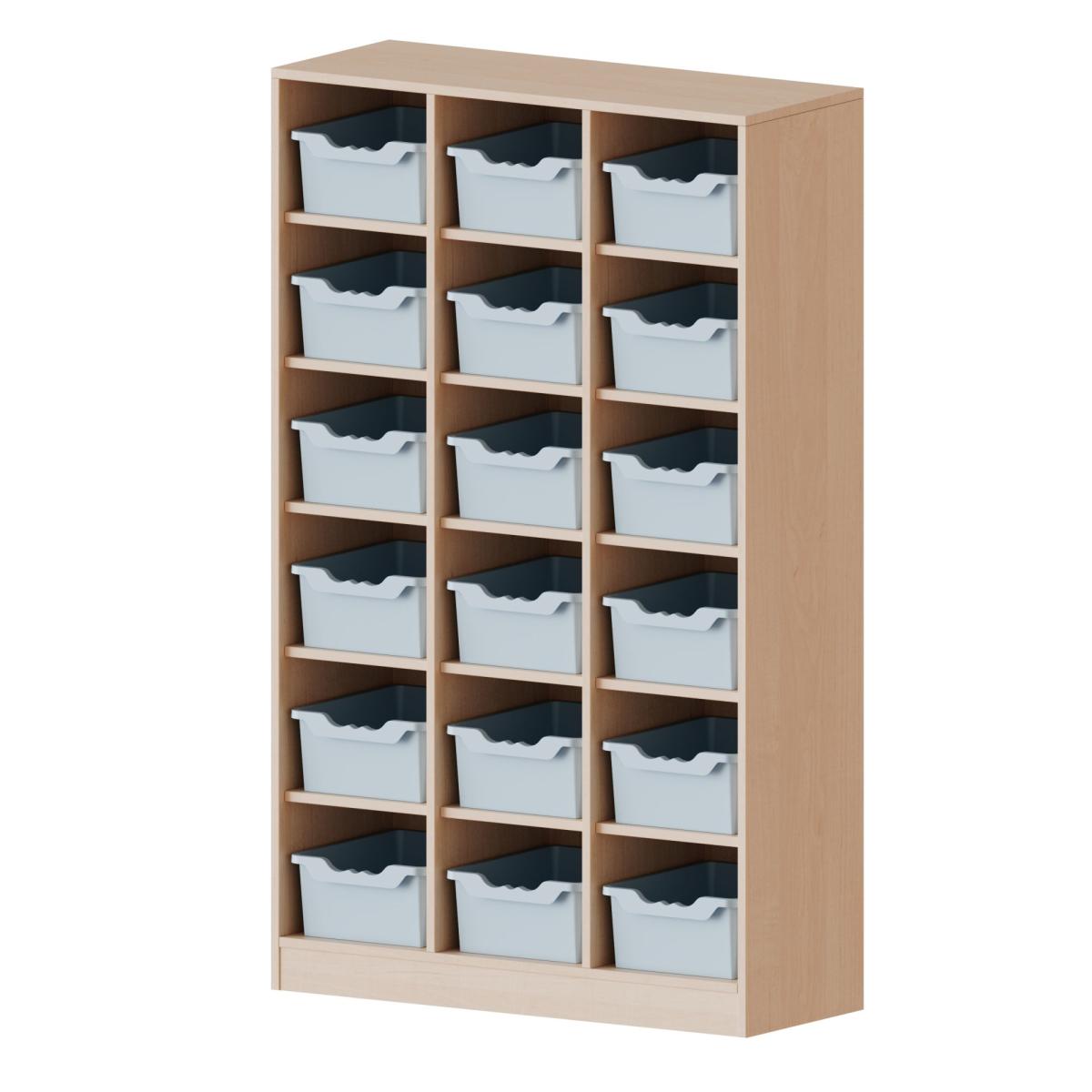 18 halbhohe Fächer, je mit einer hohen ErgoTray Box, B/H/T: 104,5x172x40 cm