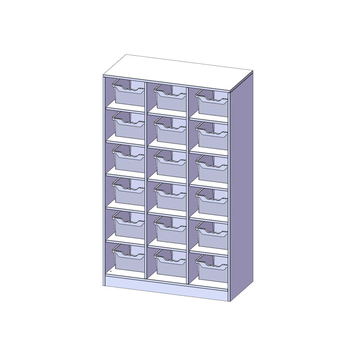 18 halbhohe Fächer, je mit einer hohen ErgoTray Box, B/H/T: 104,5x172x50 cm