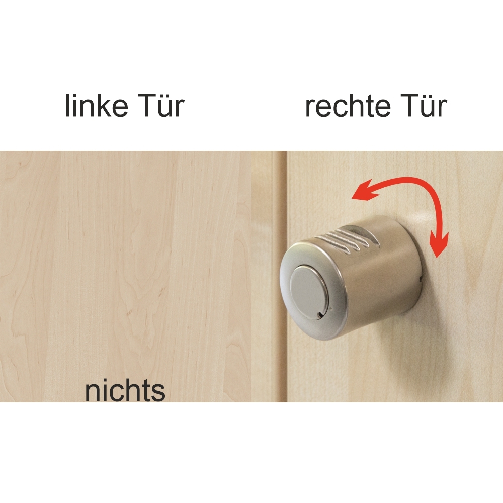 Diese Ausführung besteht aus einem Drehgriff und ist gegen Aufpreis erhältlich. Die rechte Tür lässt sich öffnen, indem Sie den Drehgriff nutzen. Die linke Tür lässt sich erst öffnen, wenn die rechte Tür geöffnet ist.