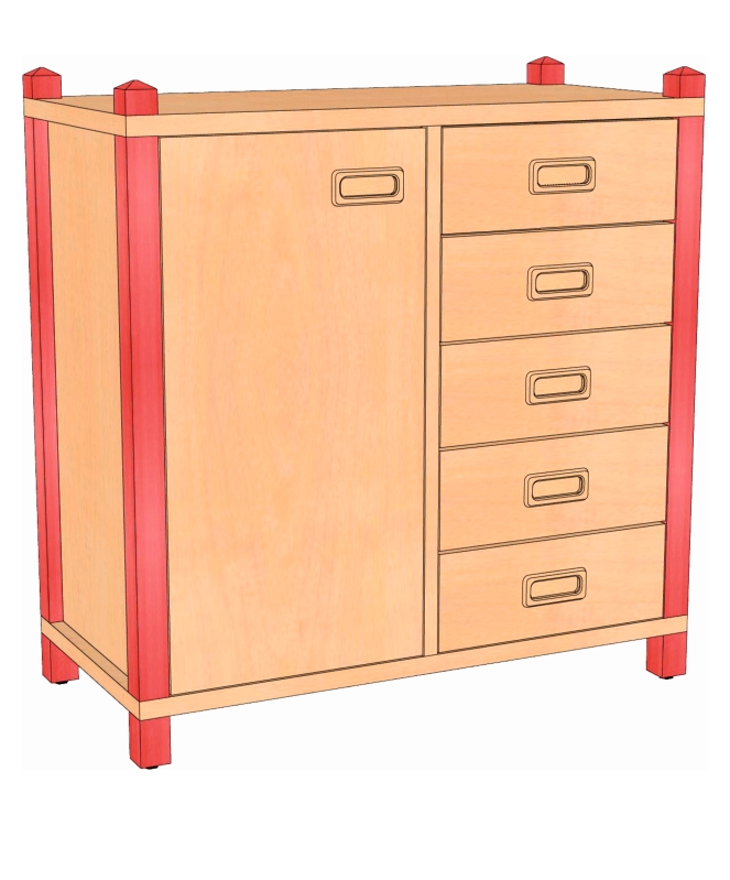 Stollenschrank mit Dekorblendschüben, Tür links, B/H/T 106 x 80 x 40 cm
