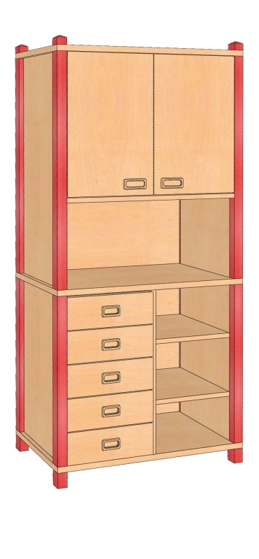 Stollenschrank mit Regal und Dekorblendschüben links, B/H/T 106 x 180 x 40 cm