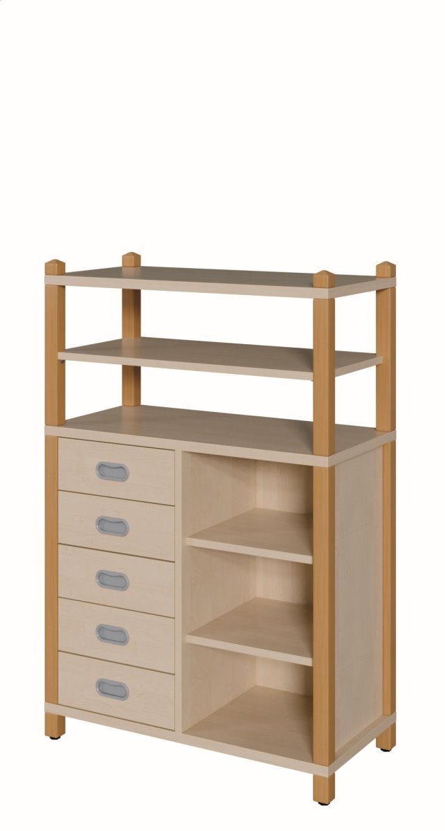 Stollenschrank mit Regal und Dekorblendschüben links, B/H/T 82 x 120 x 40 cm