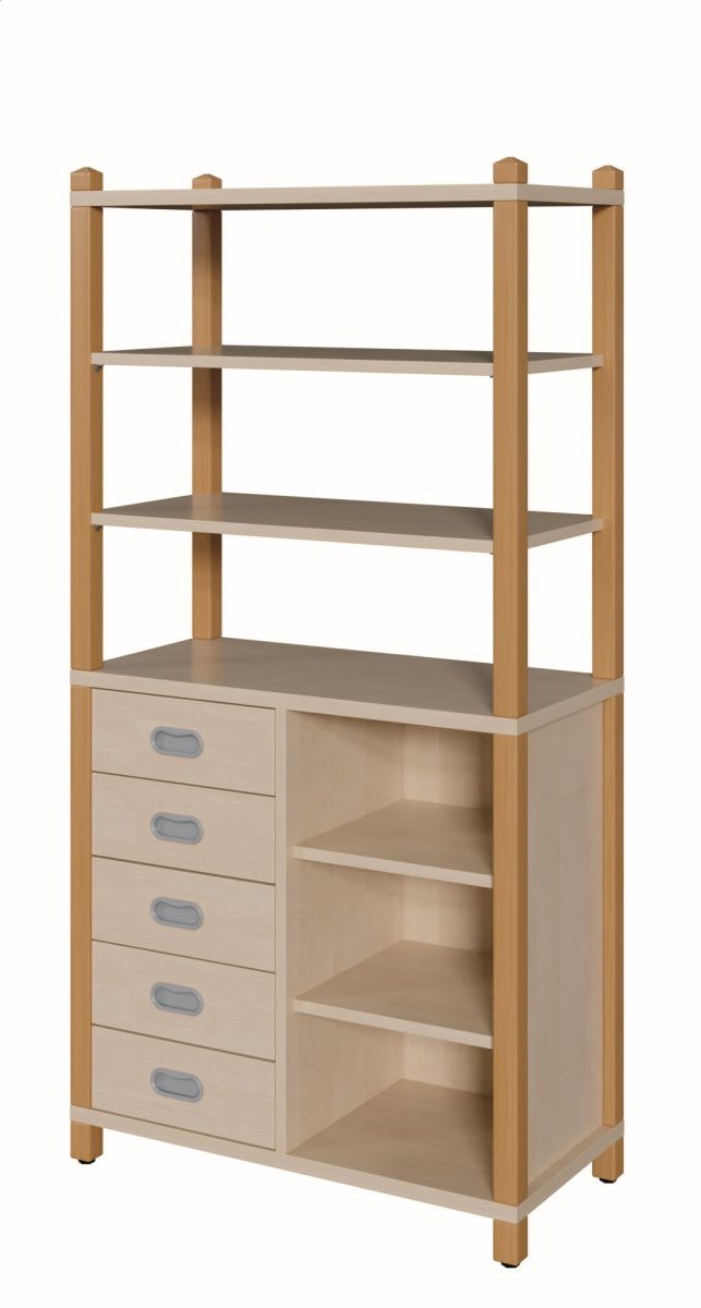 Stollenschrank mit Regal und Dekorblendschüben links, B/H/T 82 x 160 x 40 cm