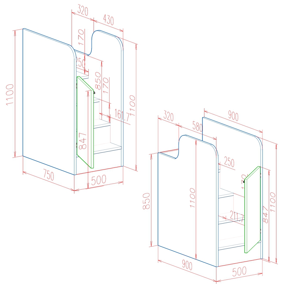 • Wickelkommode: Tiefe 75 o. 90 cm: