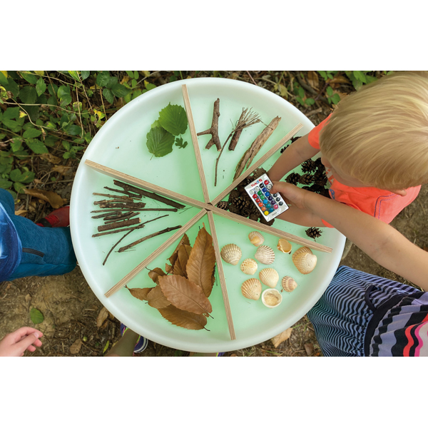 ... Auf dem runden Leuchttisch mit erhöhtem Rand können Kinder drinnen wie draußen Formen, Texturen und Farben verschiedenster Materialien und Substanzen erforschen. Nach 8-stündiger Ladezeit leuchtet der Tisch ohne Netzkabel ca. 5-10 Stunden (je nach Programmeinstellung). Das sanfte farbige oder weiße Licht kann mit der Fernbedienung eingestellt werden. Das robuste, leichte Design ist nicht nur schön, sondern auch praktisch und schnell zu reinigen. Energieklasse A+, wasserdicht nach IP65 zertifiziert. Inkl. Netzteil geeignet für EU, UK, etc. und Anleitung.