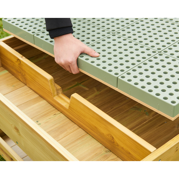 ... ist der Outdoor-Spieltisch verrottungsbeständig, schimmelresistent und UV-beständig und für den dauerhaften Einsatz im Freien bei jedem Wetter geeignet. Er ist robust gebaut und verfügt über eine MINT-Oberfläche mit gleichmäßig angeordneten Löchern und einer Ablagefläche darunter. Alle unzähligen Steckteile von Masterkidz passen in die Oberfläche, sodass die Möglichkeiten für interaktives Spielen, Bauen, Bilder gestalten sowie für reine Mathematik, Ingenieurwesen, Naturwissenschaften und Technik endlos sind. Eine wunderbare Ergänzung für jeden Außenbereich.