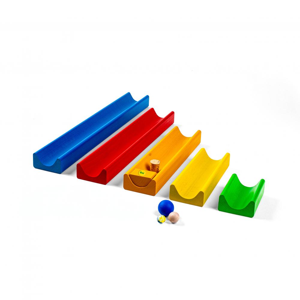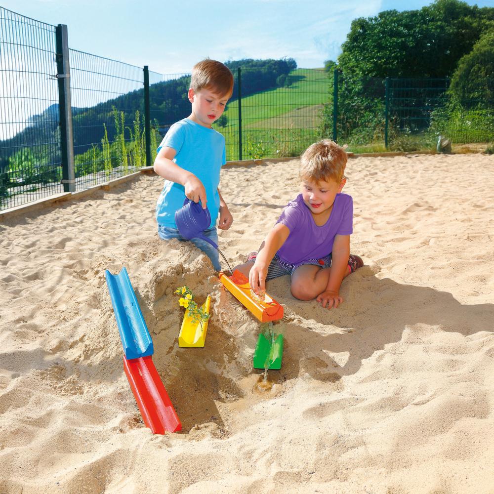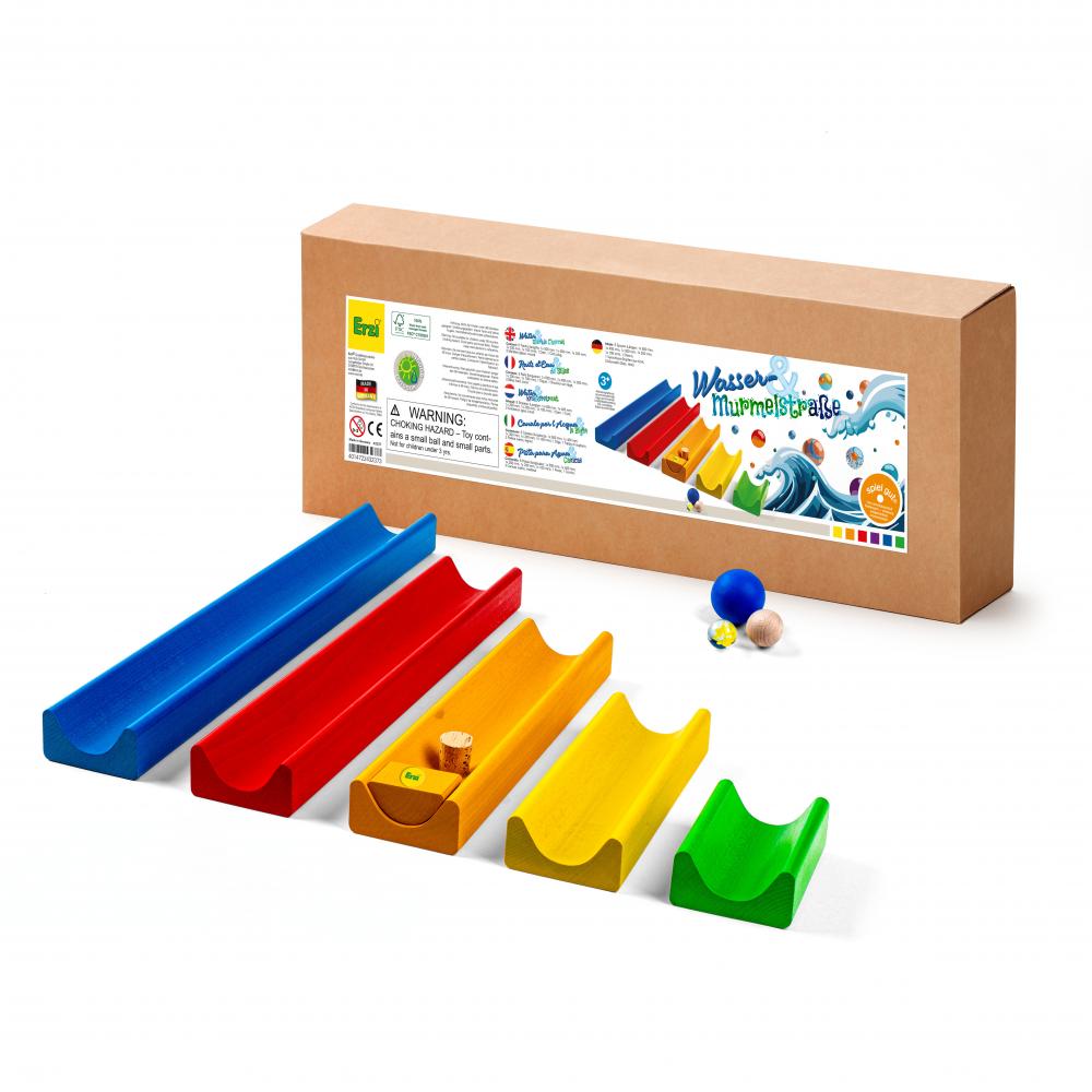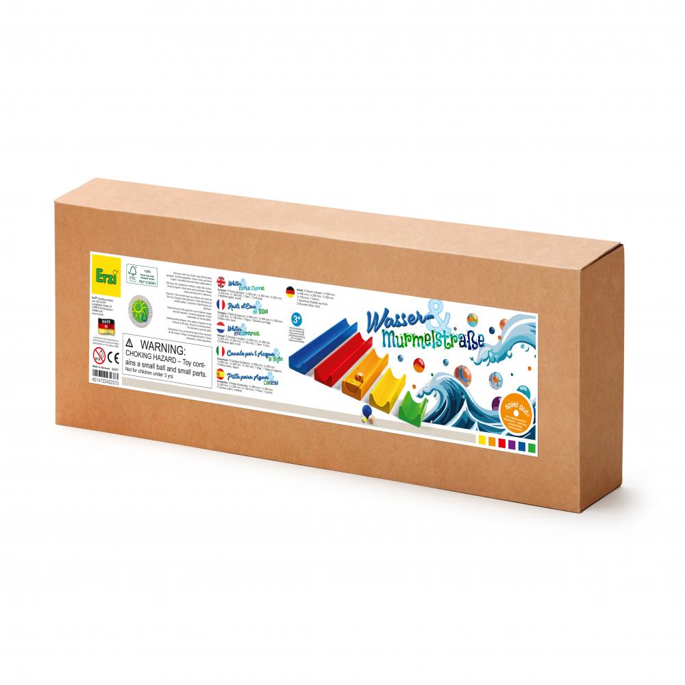 “Der Weg ist das Ziel“ – so erfahren Kinder spielerisch, wie sich der mühevolle Aufbau dieses Spieles lohnt. Fließendes Wasser oder rollende Murmeln bahnen sich den Weg von oben nach unten. Ob Winter oder Sommer, im Zimmer oder im Sandkasten – dieses Produkt kann Kinder jederzeit und überall begeistern. Dabei erschließt sich erst beim genauen Hinsehen, was diese Straße alles kann: Ein kleiner Damm bringt die Murmel zum Stoppen und bringt das Wasser zum Überlaufen. Ein Loch kann Murmel oder Wasser verschwinden lassen und in eine zweite Ebene befördern.