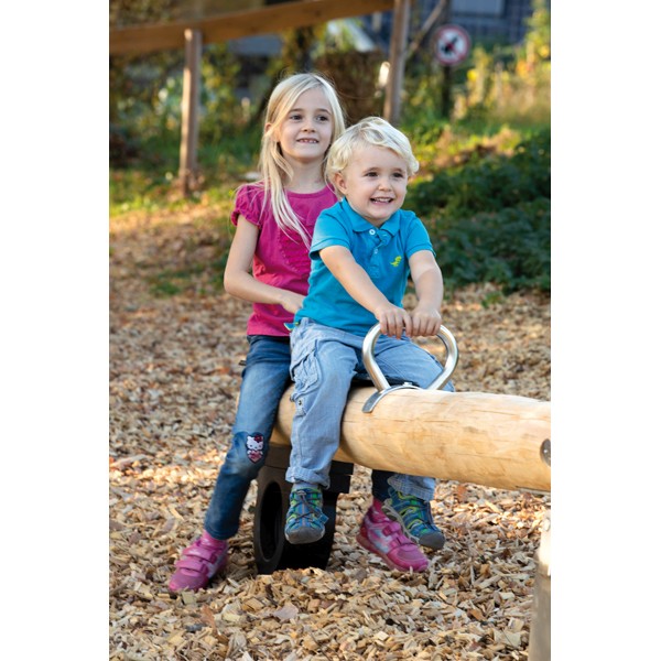 ... Balkenwippen sind beliebte Spielgeräte, weil sie nur im Zusammenspiel zweier oder mehrerer Kinder genutzt werden können. Sie fördern das gegenseitige Abstimmen von Bewegungen und zeigen auf spielerische Weise die Abhängigkeiten von Gewicht und Gegengewicht. Der Einsatz empfiehlt sich sowohl in Kindergärten als auch im öffentlichen Bereich. Balkenwippe mit Sitzen, Griffe und Dämpfung. Balken aus Robinie, entsplintet und geschliffen, oder aus Kiefer, chromatfrei druckimprägniert. Stahlfuß und Griffe aus Edelstahl, Sitzfläche aus verrottungsfreiem gummiertem Alukern. Durch die bereits am Wippbalken montierten Dämpfer entfallen zusätzliche Erdarbeiten. 5 Jahre Garantie. Zertifiziert nach DIN EN 1176. Lieferzeit: ca. 4-6 Wochen. Frachtkosten: auf Anfrage.