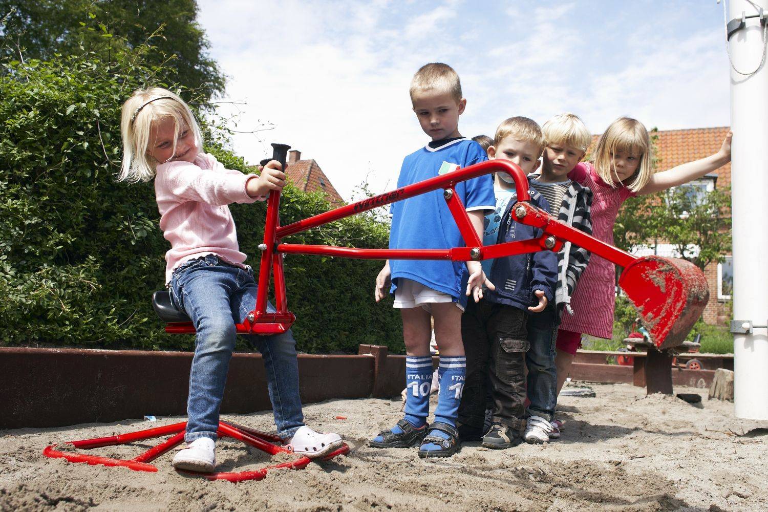 VIKING CHALLENGE Bagger • Der Bagger ist ein ganz klassisches Spielzeug: Unzählige Schaufeln Sand werden bewegt und machen aus jedem Sandkasten eine Baustelle. Fördert Rollenspiele, unterstützt Fantasie und Vorstellungsvermögen und trainiert rechte und linke Hand-Auge-Koordination, weil die Bewegung der Schaufel genau den Bewegungen der Hände folgt – genau wie bei einem großen Bagger. Wie auf einer realen Baustelle wurden auch die Sicherheitsfragen sehr wichtig genommen: die hochqualitative, stabile Konstruktion macht ein Umkippen des Baggers praktisch unmöglich.