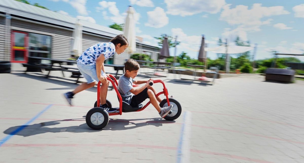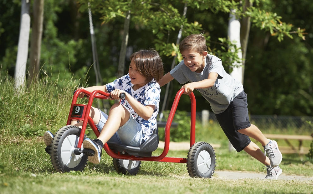 Das VIKING BobKart ist ein ganz besonderes Fahrzeug, das jede Menge Teamarbeit erfordert. Wie bei einem Bob-Schlitten braucht auch hier der Fahrer eine helfende Hand zum Anschieben, da die Pedale fest montiert sind. Damit Lenkung und Antrieb reibungslos zusammenspielen, sind gute Absprachen und eine enge Zusammenarbeit wichtig. Nur wenn alle gut aufeinander achten und sich verständigen, wird die Fahrt zum echten Erlebnis!