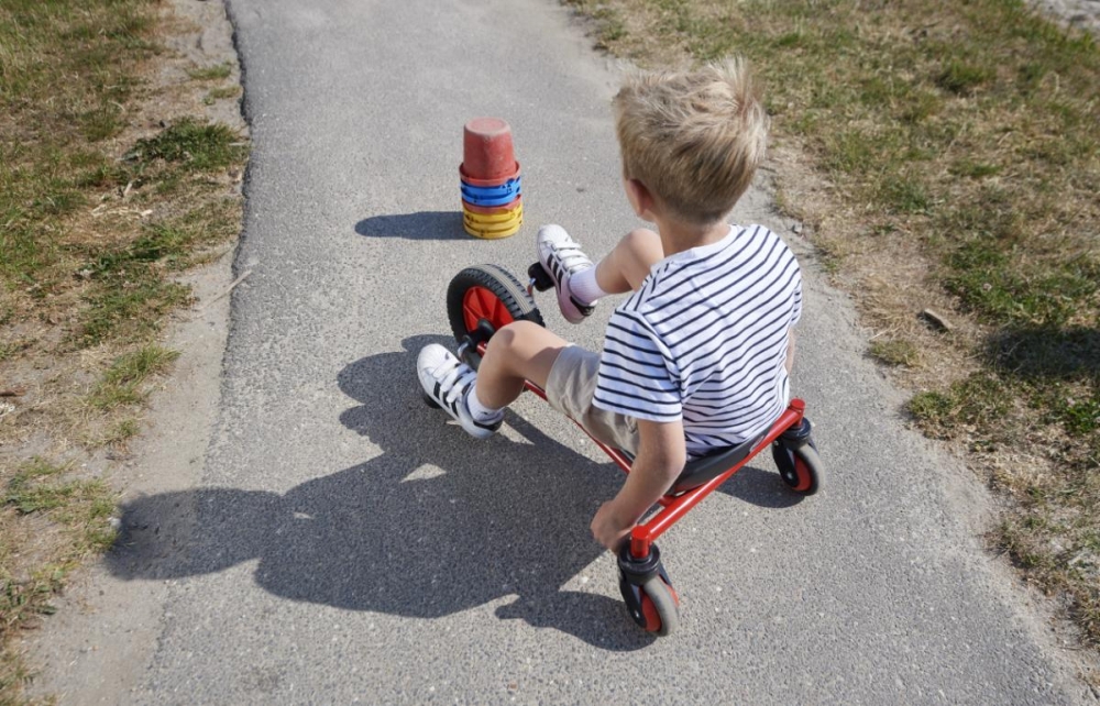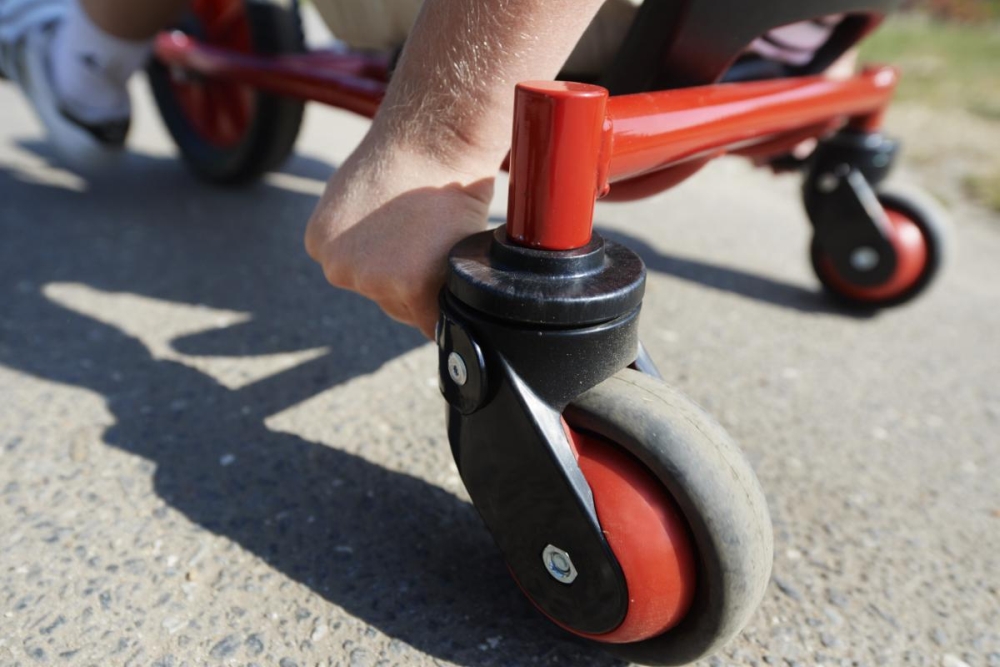 VIKING CHALLENGE Medi FunRacer • Der innovative FunRacer bietet Kindern eine spannende Herausforderung. Die Lenkung mit den zwei Griffstangen über den Hinterrädern entwickelt und fördert die Koordinations- und Manövrierfähigkeit der Kinder. Das Fahren mit diesem Dreirad stimuliert motorische und kognitive Fähigkeiten und erfordert eine gute Hand- Augen-Koordination.