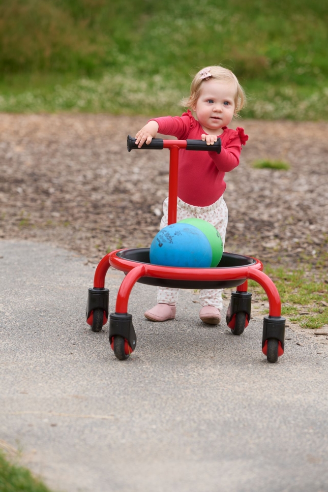 VIKING CHALLENGE Runder Laufwagen • Der runde Laufwagen mit dem einzigartigen Design bietet robuste Qualität und Sicherheit für die ersten Lauferlebnisse kleiner Kinder. Zwei feste Räder an der Rückseite geben Stabilität, während die zwei Lenkräder an der Vorderseite leichtes Manövrieren erlauben.